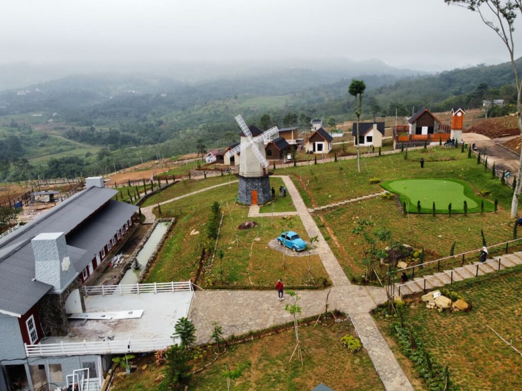 Villa dengan konsep alami pedesaan dengan udara segar alami pegunungan